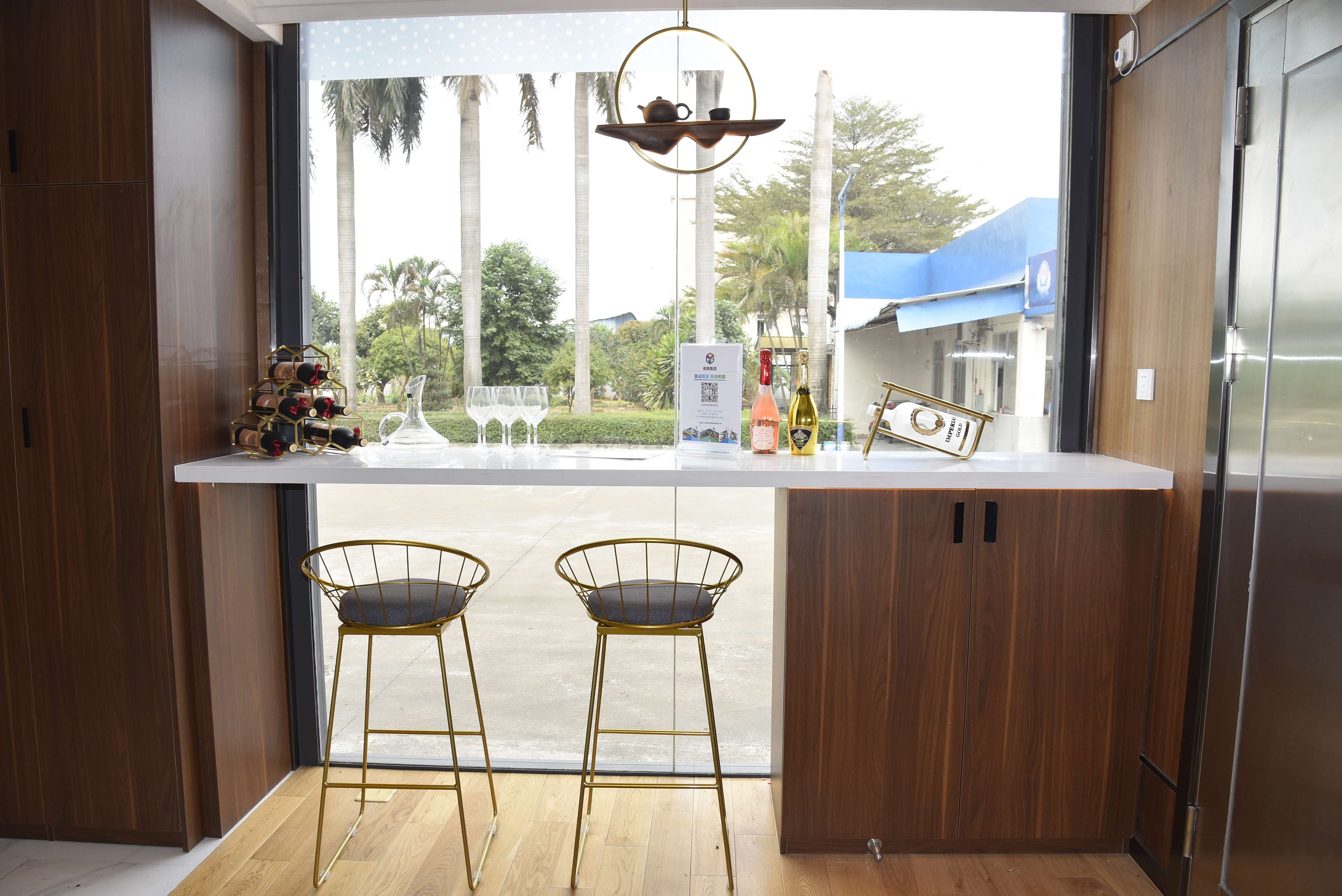 柜族本次參展的產(chǎn)品——逸海小筑位于E2裝配式建筑展區(qū)的2269展位,是一款以藍(lán)白為主色調(diào)、融入了水與波浪元素的海洋風(fēng)集裝箱別墅。該產(chǎn)品的設(shè)計(jì)理念為環(huán)保、舒適、旅居,以不破壞場(chǎng)地與自然環(huán)境為出發(fā)點(diǎn),整個(gè)產(chǎn)品為工廠預(yù)制完成,地面抬高3個(gè)臺(tái)階,有效隔離了地面的潮氣。箱子著力點(diǎn)有圓柱支撐,底座圓盤加大了受力面積和整體平衡性。箱子整體分為一、二層兩個(gè)模塊,用吊機(jī)和平板車整體裝卸運(yùn)輸,在選好的平整地面直接擺放就可以入住使用了。
