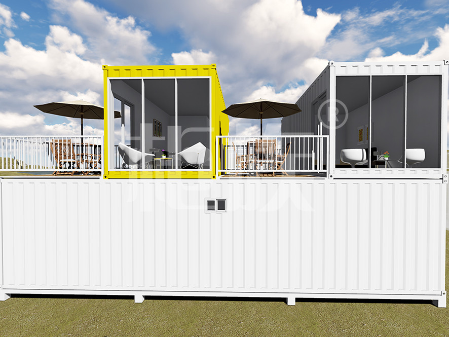 組合式公寓采用多個集裝箱疊加、錯列組合,庭院陽臺可根據屋主意愿設計建造,盡顯個性。內部實用空間充足,配套設施齊全。
