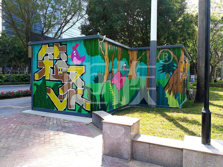 驛站使用兩個(gè)集裝箱錯(cuò)位串聯(lián)而成,正面墻體使用大面積玻璃門窗,線條流暢、造型時(shí)尚、通透亮堂,很好的突出了驛站的標(biāo)志性與開放性的特點(diǎn)。